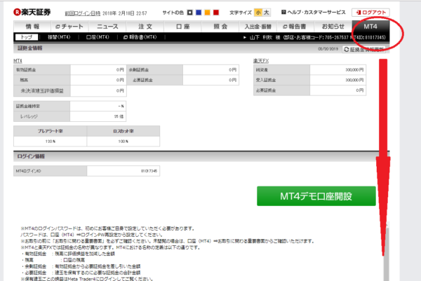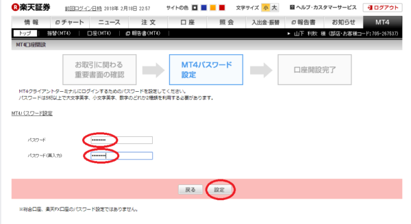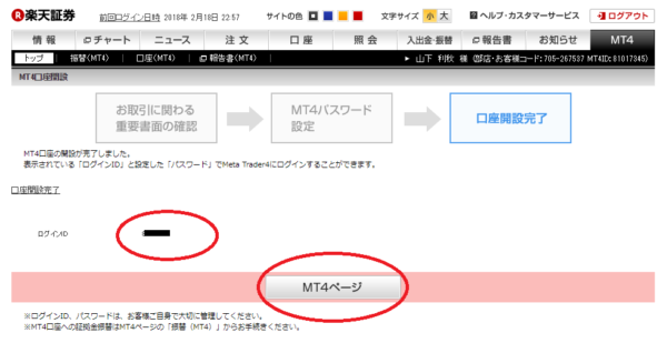 こちらは実際の取引所である楽天証券の楽天FXで口座開設したものです。