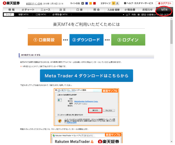 楽天FXからのインストール