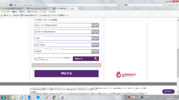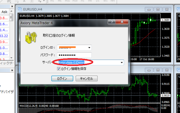 ■一つはデモ口座(Axioryからインストール)